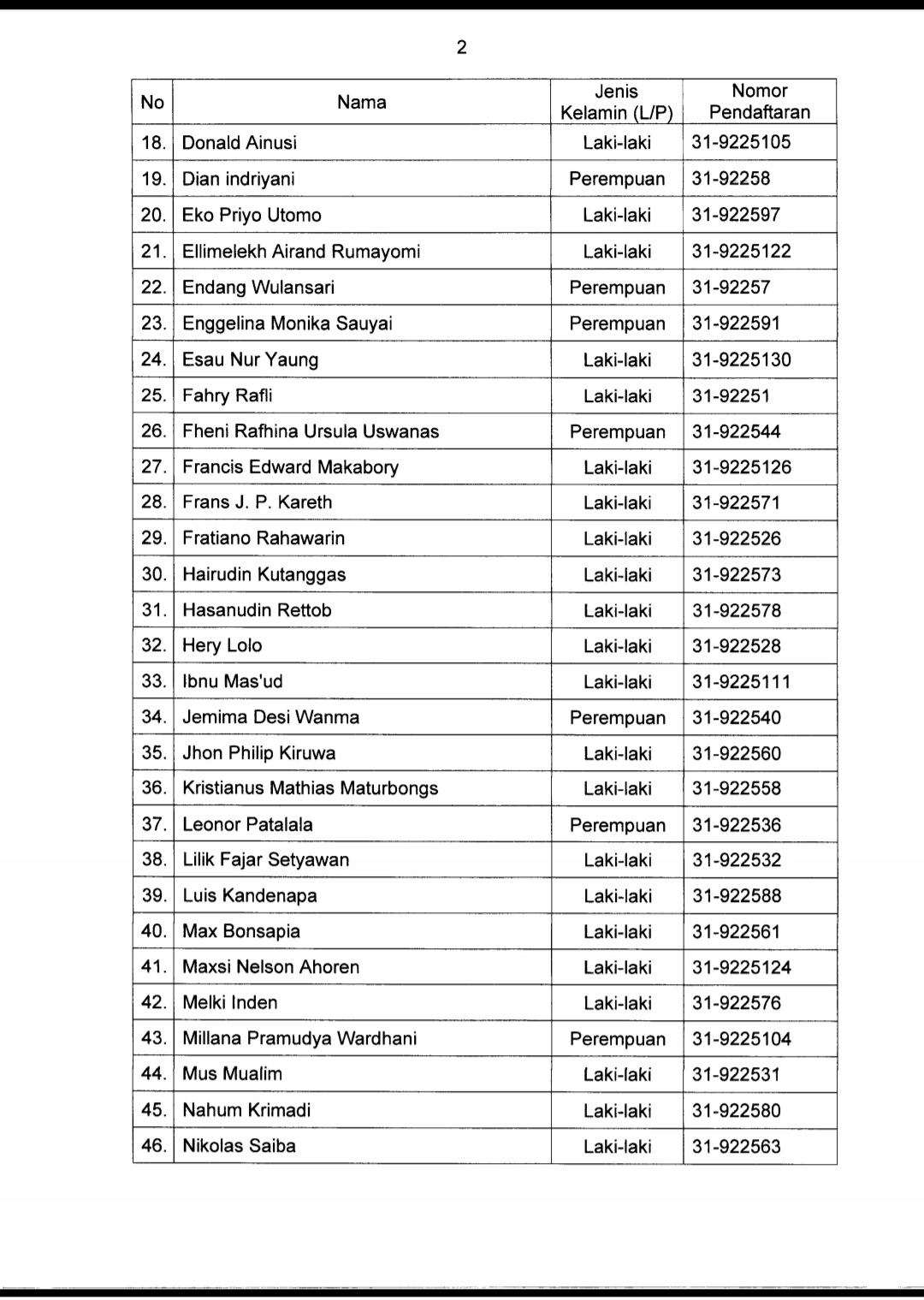 Adapun peserta yang tidak lolos, kata Sekretaris Tim Seleksi, Mervi Asmuruf karena kesehatan, ijazah yang tidak dilegalisir, status ASN namun tidak melengkapi rekomendasi dari pejabat yang berwenang, belum memenuhi persyaratan dan terlibat dalam partai politik.
