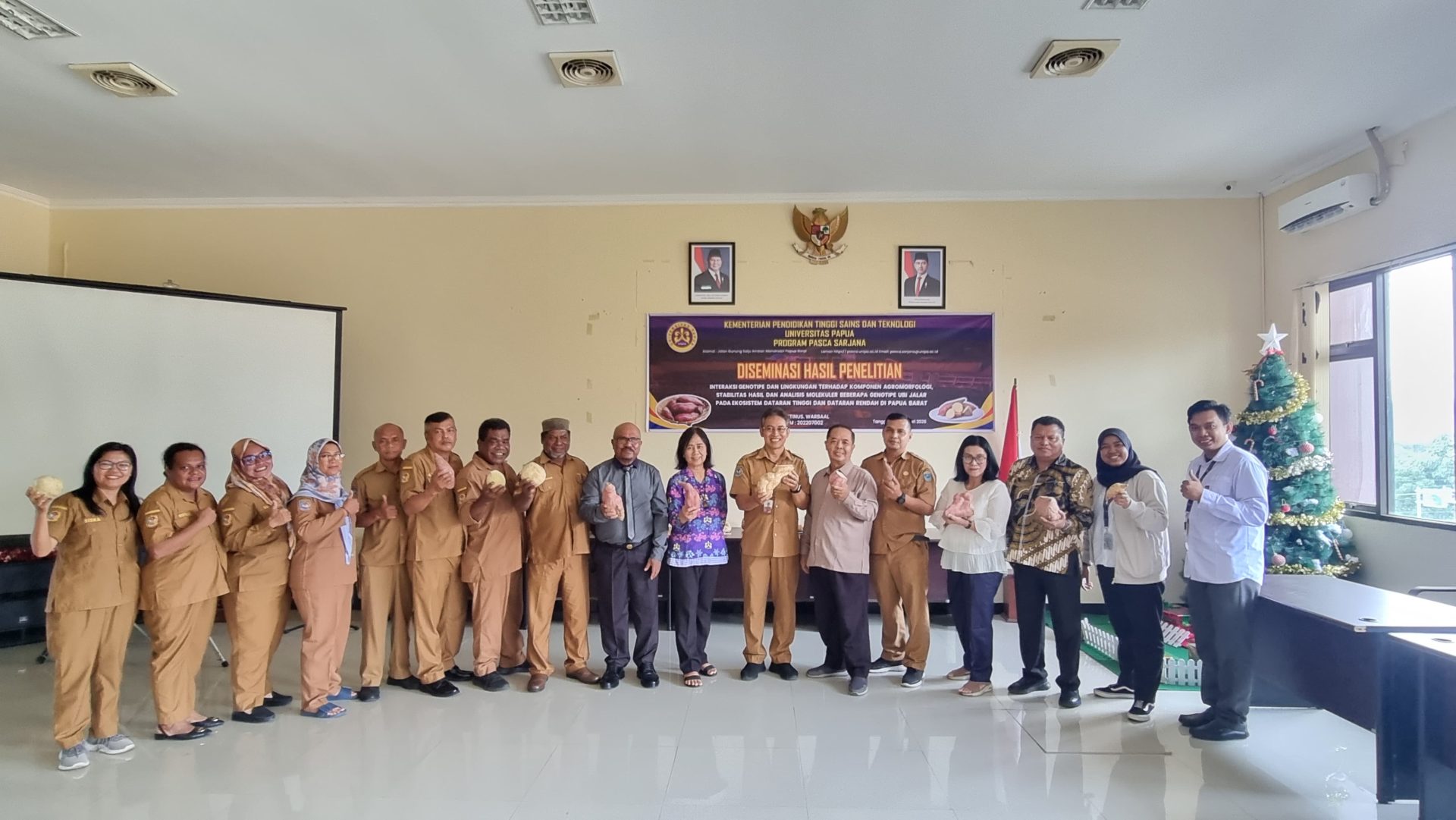 Diseminasi dilaksanakan di Aula Kantor Dinas Tanaman Pangan Hortikultura dan Perkebunan Papua Barat. Kegiatan ini untuk memetakan karakter morfologi, komponen hasil, serta kualitas sensori untuk mendukung ketahanan pangan dan perakitan varietas unggul baru