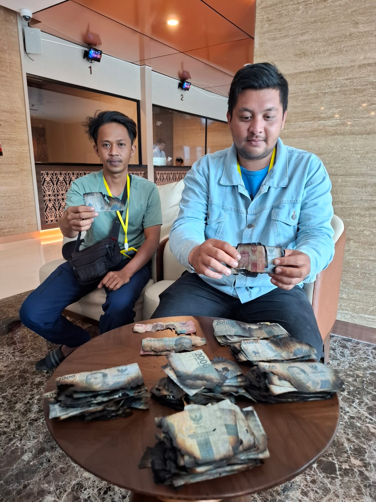 Irman dan Faldy datang ke Kantor Perwakilan Bank Indonesia membawa ratusan lembar uang Rupiah dari berbagai pecahan dengan kondisi sebagian hangus terbakar. Mereka mengaku bahwa uang tersebut sengaja dikumpulkan dan sedianya akan digunakan untuk membeli barang kebutuhan kios mereka. Keduanya tidak menyangka kebakaran tersebut akan menimpa lokasi usaha mereka, termasuk uang Rupiah yang tersimpan di dalamnya. Namun, mereka bersyukur karena sebagian besar uang yang hangus tersebut akhirnya dapat ditukarkan di Bank Indonesia.