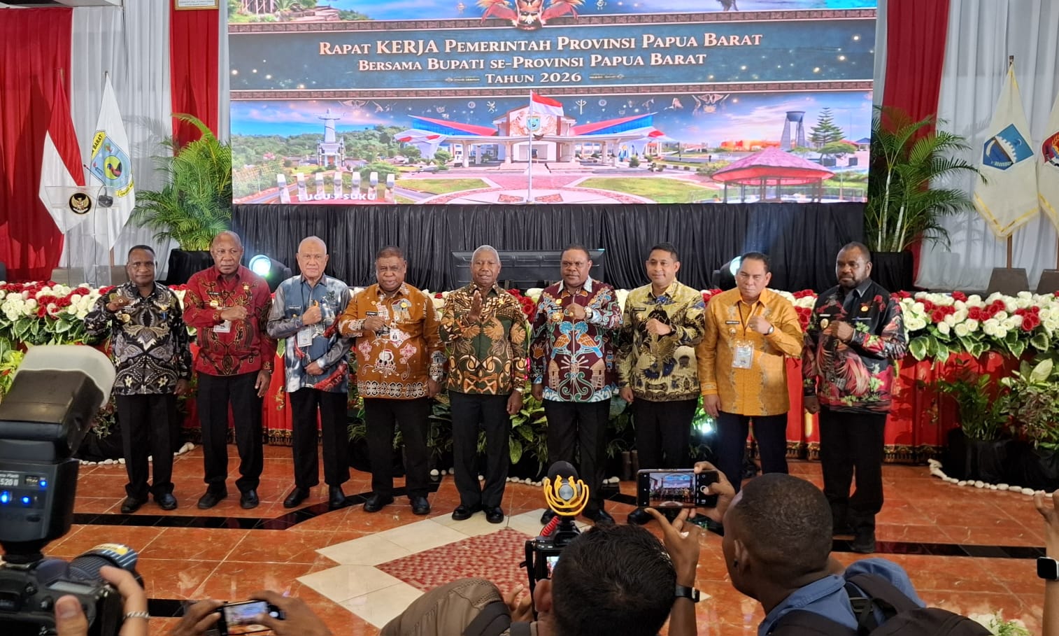 MANOKWARI – Bupati Manokwari, Hermus Indou menghadiri Rapat Kerja (Raker) Bupati se Provinsi Papua Barat di Manokwari, Kamis (16/4/2026).