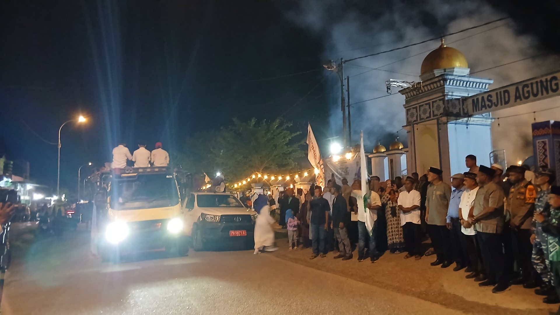 Setelahnya, bersama unsur Muspida muslim lainnya, Bupati didampingi Wakil Bupati membakar obor dan mengayunkan bendera PHBI sebagai tanda seluruh rombongan pawai takbiran mengelilingi Kota Waisai merayakan datangnya lebaran 1 Syawal 1447 H / 2026 M. (SM14)