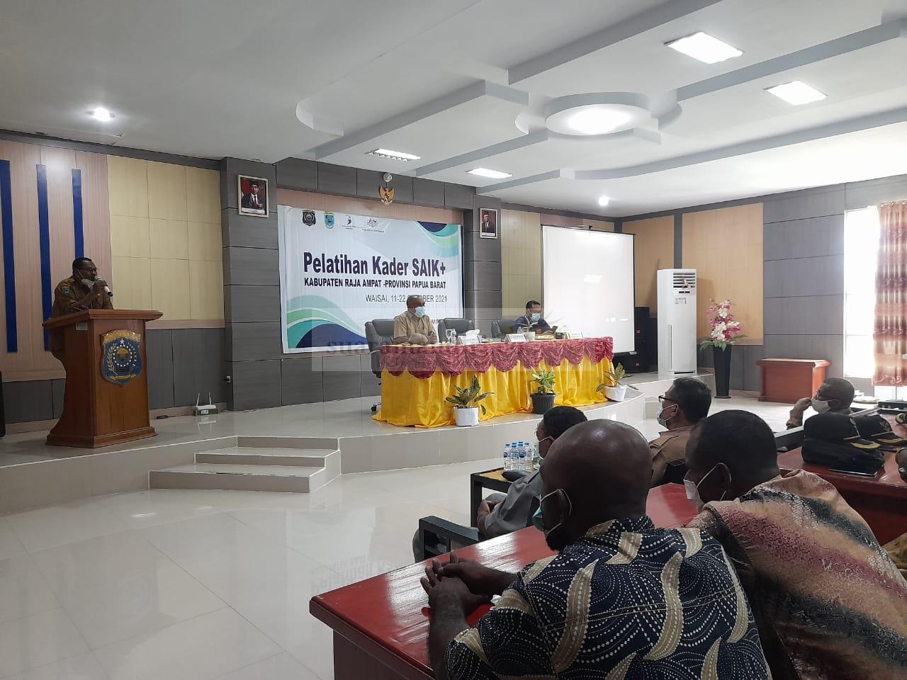 RAJA AMPAT, WAISAI – Badan Perencanaan Pembangunan Daerah (BAPPEDA) Kabupaten Raja Ampat menyelenggarakan Pelatihan Sistem Administrasi dan Informasi Kampung Plus (SAIK+) bekerjasama dengan Bursa Pelatihan Kawasan Timur Indonesia (BaKTI) di Aula Kantor Bappeda Raja Ampat, Senin (11/10/2021).