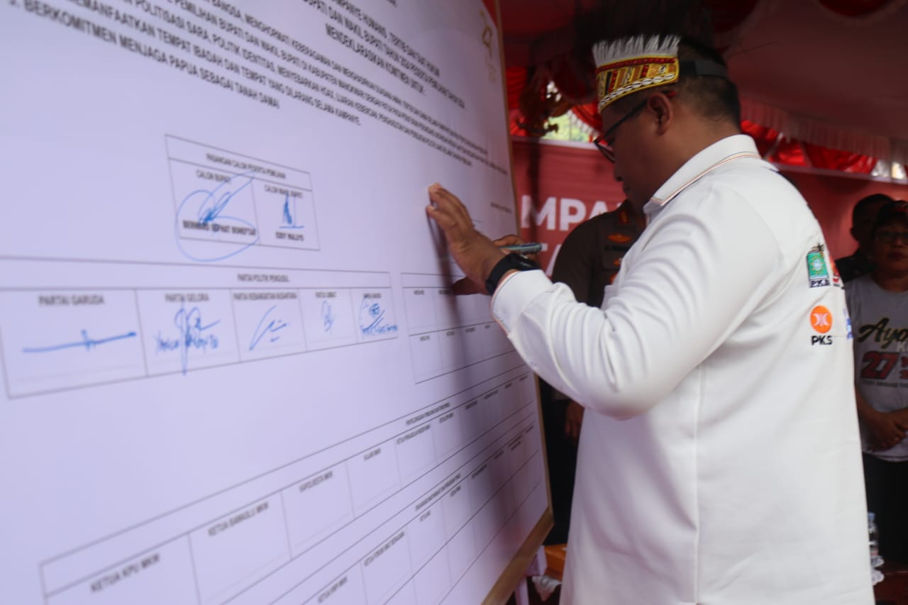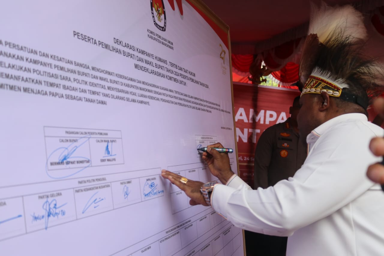 Ketua KPU Manokwari, Christine Rumkabu, mengatakan deklarasi yang diucapkan mengikat pasangan calon, pendukung, dan simpatisan. Komitmen yang disepakati adalah kampanye tanpa ujaran kebencian serta menjaga persatuan dan kesatuan.