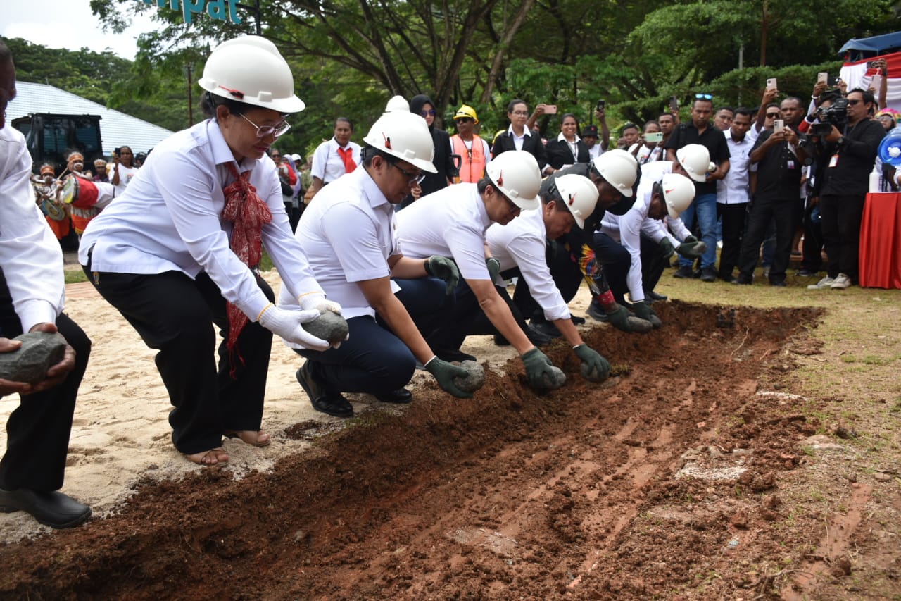 Waisai, Raja Ampat – Menteri Kesehatan Republik Indonesia, Budi Gunadi Sadikin didampingi, Kepala Kantor Komunikasi Kepresidenan Indonesia, Hasan Nasbi, Kepala Staf Presiden Mayjend (Purn) Antok Putranto, Gubernur Provinsi Papua Barat Daya, Elisa Kambu dan Bupati Raja Ampat, Orideko I. Burdam meletakkan batu pertama pembangunan Rumah Sakit Umum Daerah (RSUD) tipe C Kabupaten Raja Ampat, Jumat (16/05/2025)
