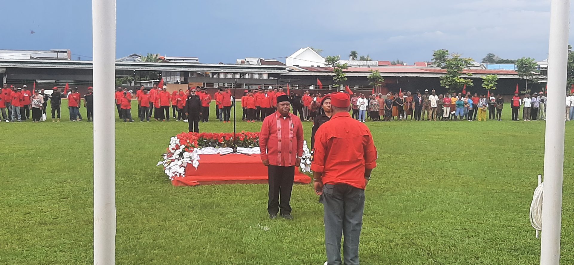 Upacara dalam rangka memperingati hari lahirnya pancasila DPD PDIP Papua Barat mengusung Tema “setia kepada sumber mu” dan Sub Tema kekuatan kita harus bersumber kepada rakyat tetapi apinya semangat rakyat. (SM)