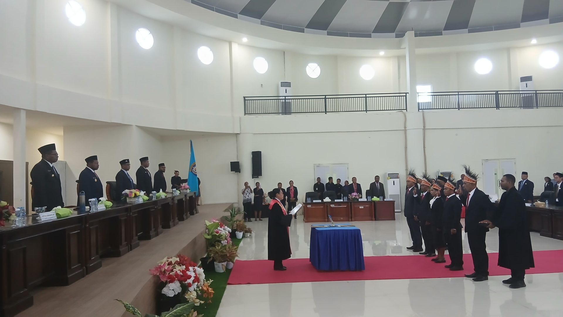 Waisai, Raja Ampat – Rapat Paripurna Istimewa dalam rangka pengambilan sumpah dan janji anggota dewan perwakilan rakyat terpilih Kabupaten Raja Ampat melalui mekanisme pengangkatan periode 2024-2029 dilaksanakan di Ruang Sidang Kantor DPRK Raja Ampat, Senin (24/12/2025)