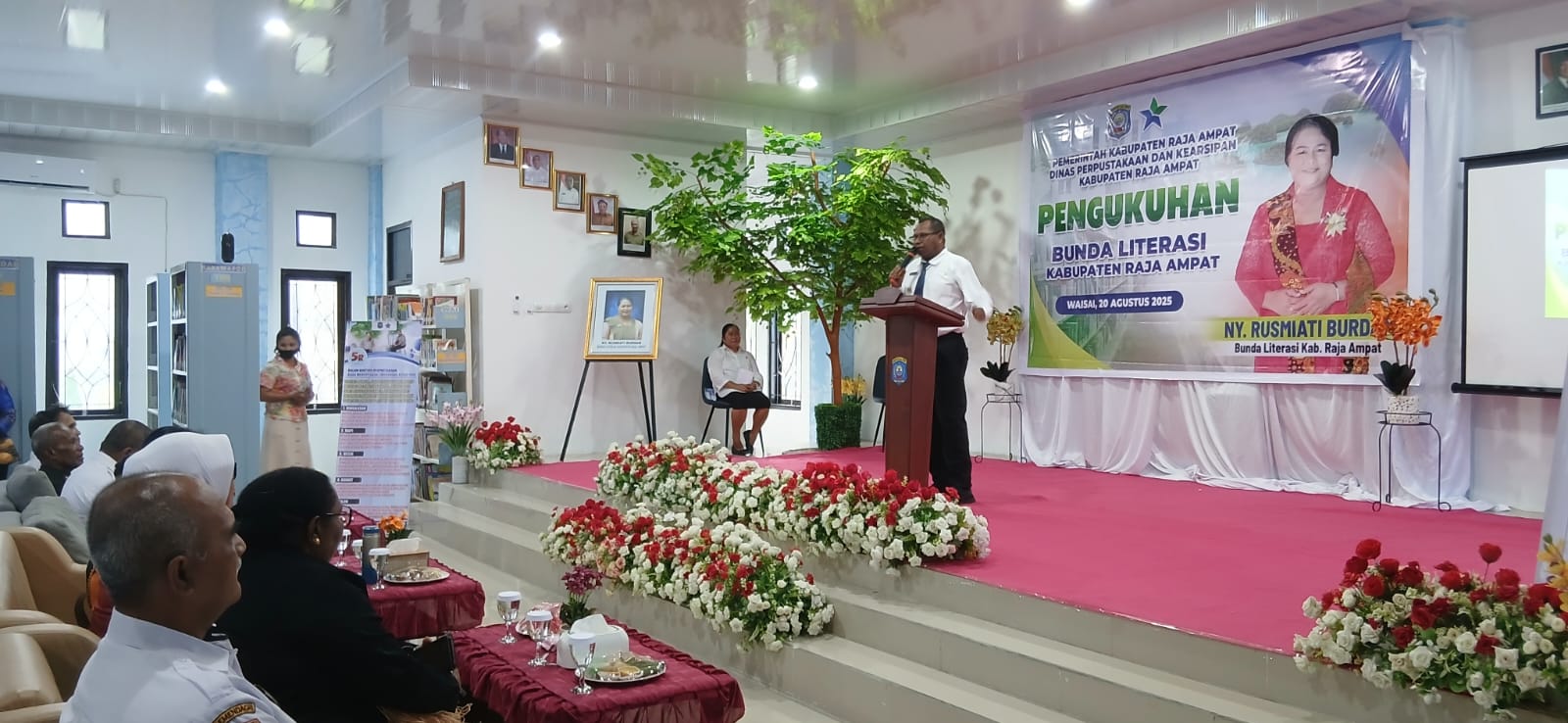Waisai, Raja Ampat – Didalam momen peresmian Gedung Perpustakaan Daerah KOFARKOR Kabupaten Raja Ampat, Bupati Raja Ampat juga mengukuhkan ‘Bunda Literasi’ kepada Rusmiati Burdam, melalui Surat Keputusan bernomor 188/80/SK-RA/VIII/2025, Rabu (20/08/2025).