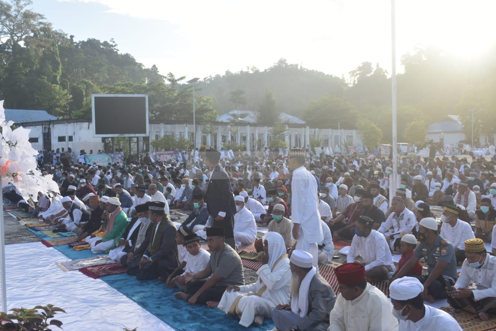 WAISAI, RAJA AMPAT – Pelaksanaan Sholat Idul Fitri 1 Syawal 1443 H di Lapangan Apel Kantor Bupati berlangsung khidmat. Ribuan masyarakat muslim Kota Waisai memenuhi lapangan yang telah disiapkan sejak pukul 06.00 WIT, Senin (02/05/2022)