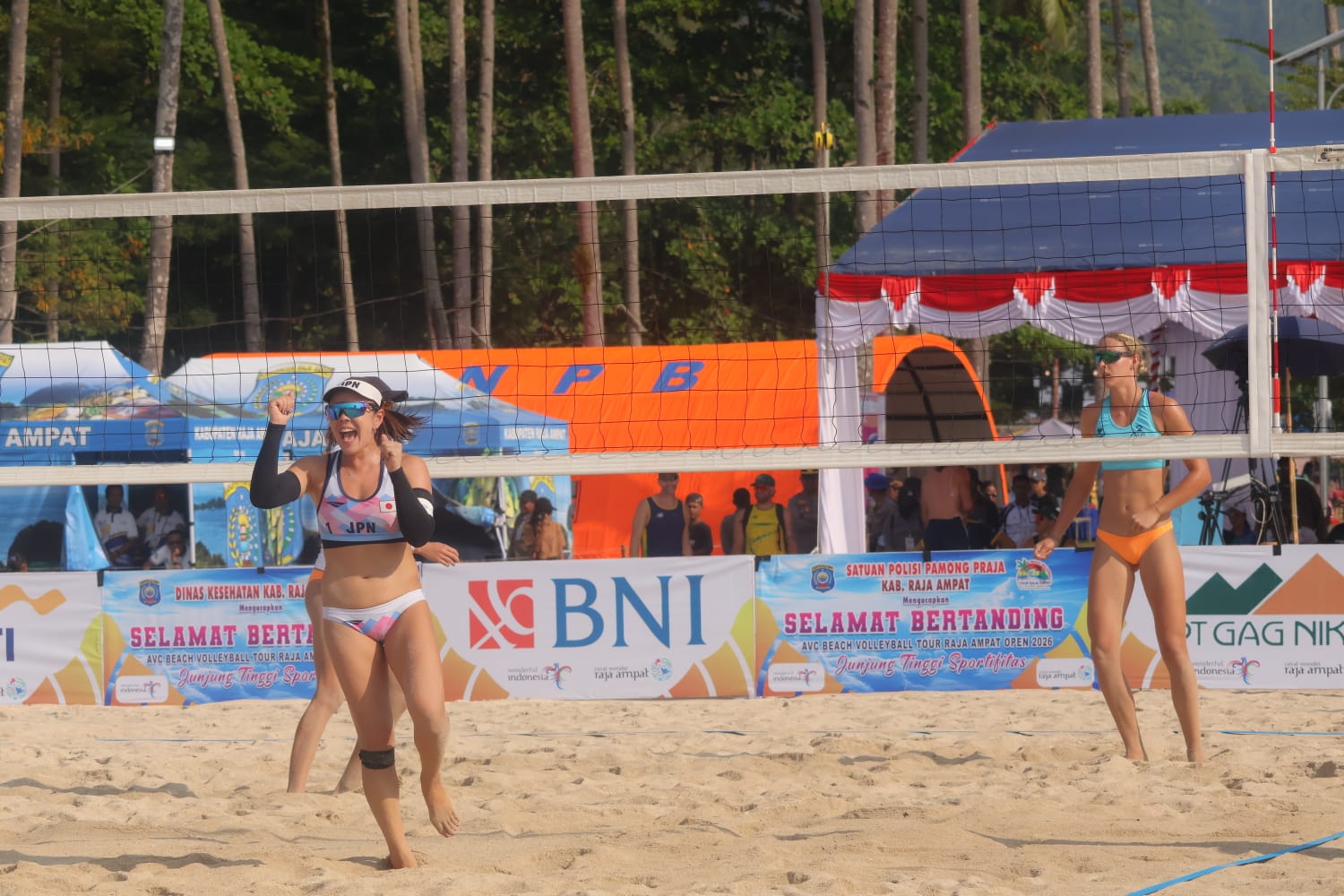 WAISAI, RAJA AMPAT – Tim Jepang 1 Asami SHIBA dan Reika Murakami keluar sebagai juara Asian Volleyball Confederation (AVC) usai mengalahkan pasangan Australia 2, Stefanie FEJES dan Jasmine RAYNER pada final yang dilaksanakan di pantai Waisai Torang Cinta (WTC), Kamis (9/4/2026).