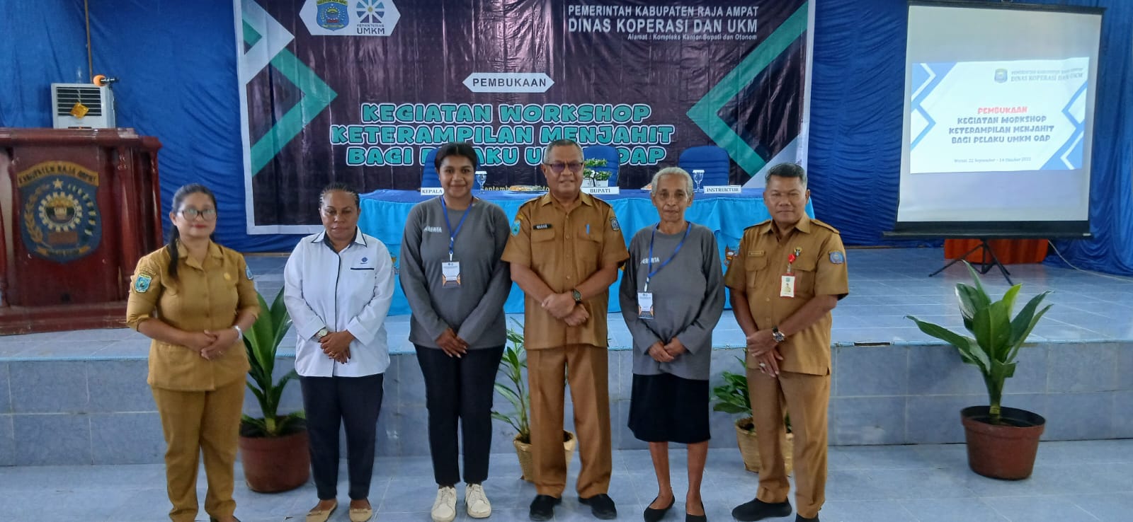 RAJA AMPAT – Dinas Koperasi dan UMKM (Usaha Mikro, Kecil, dan Menengah) Kabupaten Raja Ampat menyelenggarakan Kegiatan Workshop Keterampilan Menjahit yang direncanakan selama dua puluh hari dan diikuti oleh enam belas orang pelaku UMKM Orang Asli Papua (OAP) di Kota Waisai. Pembukaan kegiatan tersebut dilaksanakan di Aula Gedung Wanita Syalome Syeben, Waisai, Senin (22/09/2025)