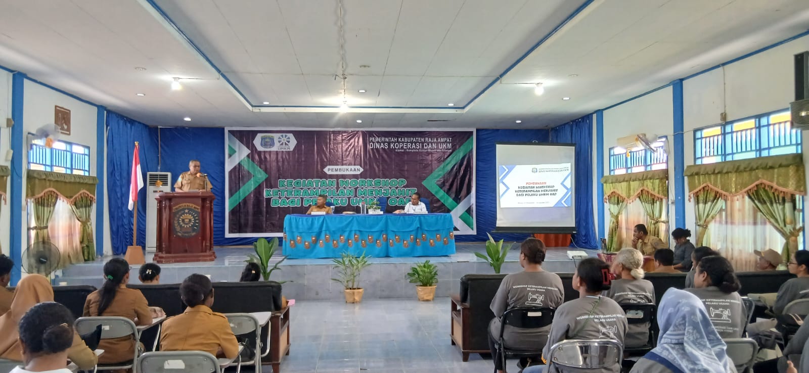 RAJA AMPAT – Dinas Koperasi dan UMKM (Usaha Mikro, Kecil, dan Menengah) Kabupaten Raja Ampat menyelenggarakan Kegiatan Workshop Keterampilan Menjahit yang direncanakan selama dua puluh hari dan diikuti oleh enam belas orang pelaku UMKM Orang Asli Papua (OAP) di Kota Waisai. Pembukaan kegiatan tersebut dilaksanakan di Aula Gedung Wanita Syalome Syeben, Waisai, Senin (22/09/2025)